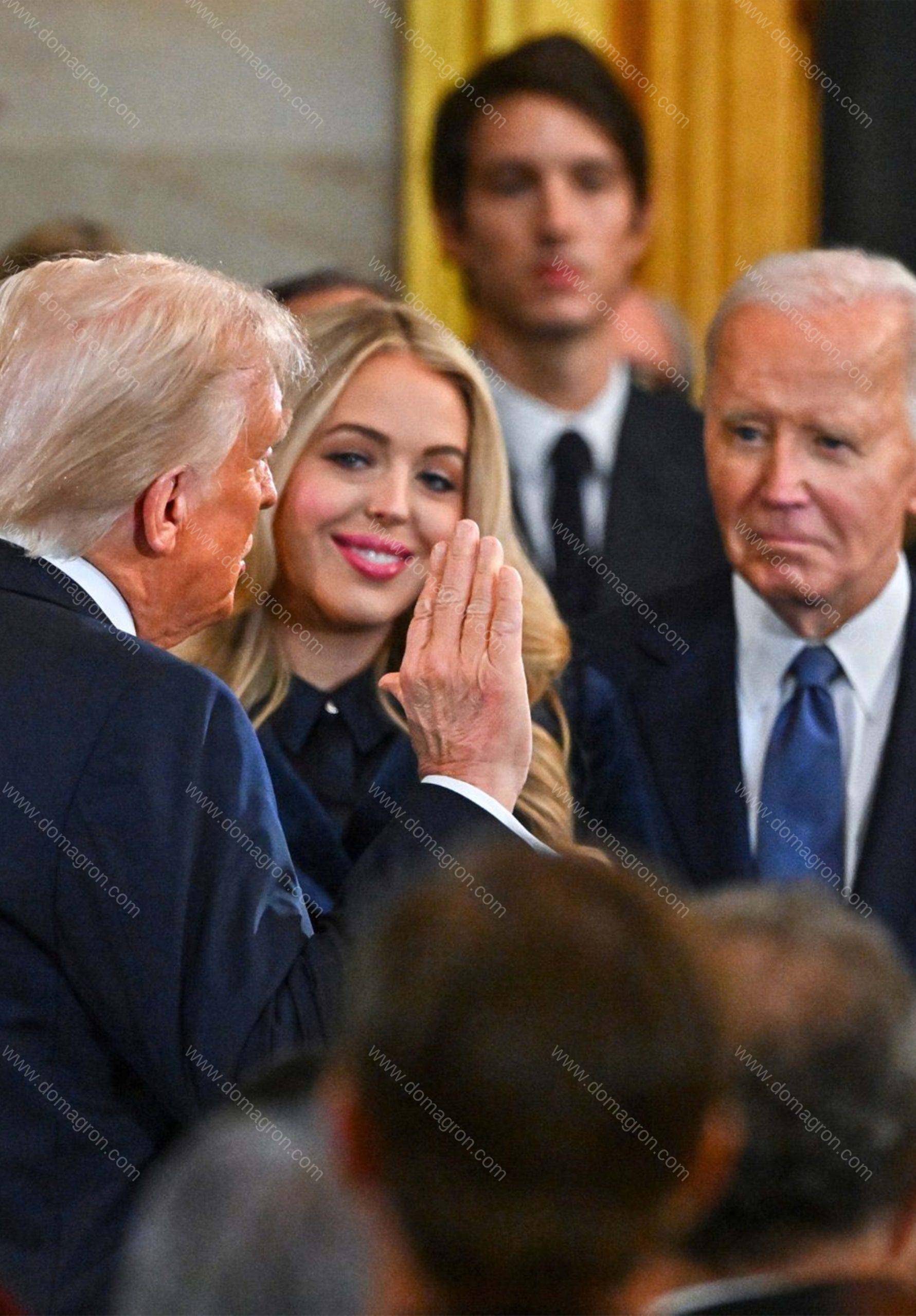 Trump Inauguration Swearing In With Biden Overlooking Metal Photo
